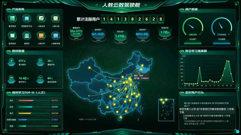 在“人教云数驾驶舱”,数字教材、智慧教学平台、人教点读等八大数字产品矩阵一目了然。 人民教育出版社供图
